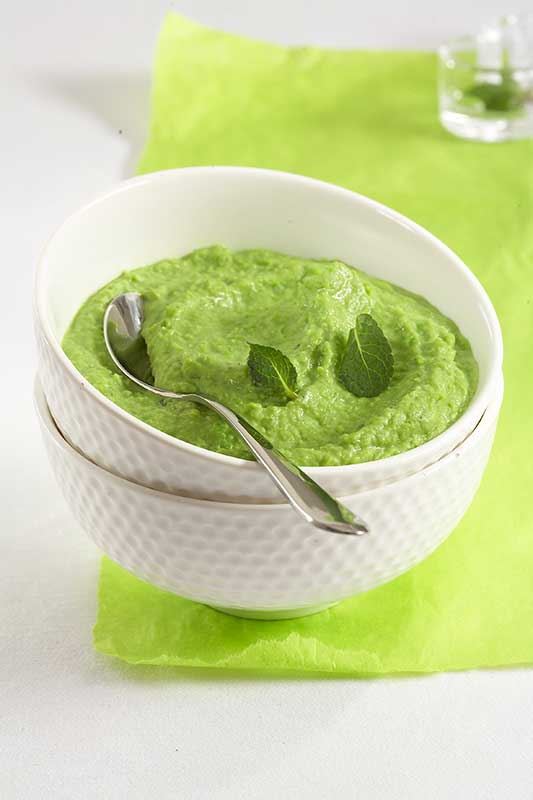 Grašak očistite, stavite u veliku posudu u 1,5 l hladne vode i ostavite da se namače preko noći. Kuhajte ga u istoj vodi na srednjoj vatri 40 do 50 minuta. Kad grašak omekša, ocijedite ga, izmiksajte i propasirajte. Začinite ga solju i paprom pa umiješajte mlijeko. Po želji, ukrasite listićima metvice.