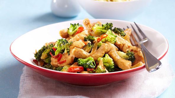 Pileći file narežite na što manje trakice. U zagrijanom woku pirjajte luk, brokulu i papriku. Nakon tri minute dodajte piletinu i naribani đumbir. Dodajte limunov sok te na samom kraju umiješajte malo chillya i soja sos. Gotovo jelo poslužite uz rižu ili tjesteninu.