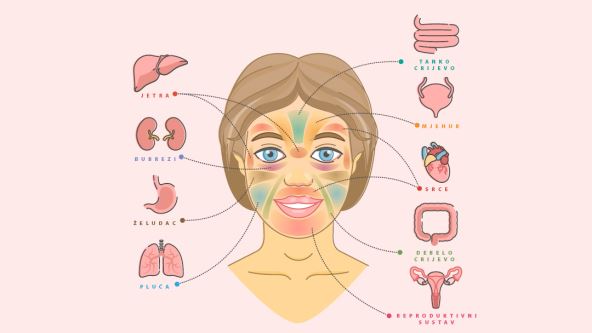Dok strane našeg lica mogu ukazivati na probleme koji se odnose na žensku i mušku energiju, specifično područje na kojem se pojavljuju svi kožni problemi također može biti povezano s unutrašnjim radom našeg tijela. Prema kineskoj metodi 5 elemenata, svako područje lica odgovara drugom organu. Pogledajte mapu!