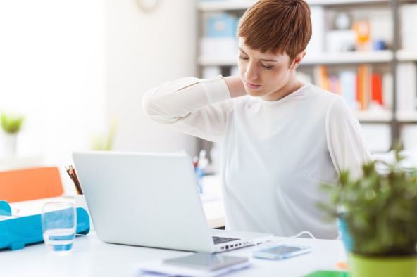 Lijevu ruku stavite na leđa otprilike u visini struka pa desnom rukom primite zaglavak lijeve ruke i lagano je povucite udesno pazeći da vam se pritom ne saviju ramena te da ostanu ravna.