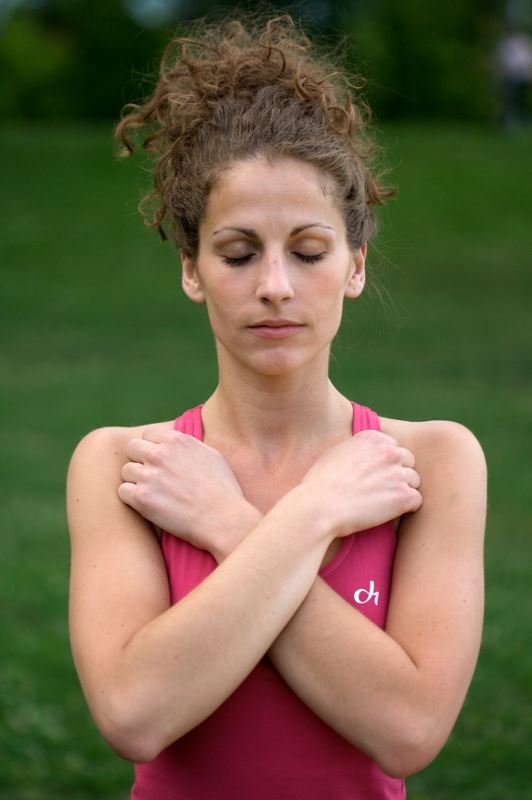 Prekrižite ruke na prsima kao da sami sebe držite. Neka vaš desni dlan počiva na lijevoj, a lijevi na desnoj nadlaktici. Dopustite neugodnom osjećaju da izađe na površinu pa tapkajte prstima najprije po lijevoj pa po desnoj nadlaktici i tako naizmjence brzinom koja vam odgovara. Važno je da tapkate naizmjence, a ne istodobno obje strane. Dok to činite, dišite duboko i polako. Nakratko se zaustavite, udahnite i usmjerite pozornost na trenutni osjećaj. Možda vas iznenadi promjena stanja i osjećaj da ste mirniji: primijetite to i nastavite tapkati. Ako se osjećaj nelagode ne smanjuje, ne odsutajte – dajte si vremena da vježba počne djelovati.
